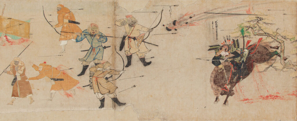 また展示会場の後半には特別展示として、鎌倉時代の二度にわたる元寇を題材とし、海外交流史の上でもきわめて重要な作品として知られる国宝《蒙古襲来絵詞》を展示します。長崎県では壱岐市、対馬市等において古戦場周辺の発掘調査が継続して実施されているほか、1980年に初めて水中調査が実施されて以来継続的に調査が重ねられている松浦市では、2024年10月にも3隻目となる元軍沈没船が確認されるなど大きな注目を集めています。本展では参考資料として松浦市教育委員会が所蔵する出土遺物《てつはう》も展示します。 本展は今日まで大切に受け継がれてきた皇室ゆかりの名品の数々を通して皇室文化の精華にふれるとともに、地域の文化を見つめなおす契機となるはずです。