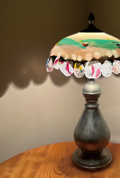 その後、40年にわたり創作活動に全てを捧げ、コンクールや公共の施設、ギャラリーや美術館でのインスタレーションなど、多岐にわたり発表し続けました。とりわけ 「灯り」 には深いこだわりを持ち、溶け合うガラスの優しいフォルムに、物語性のある絵画的な色彩を重ね描き、光の表現を追求しながら、1000点を超える美しい作品をこの世に残しています。