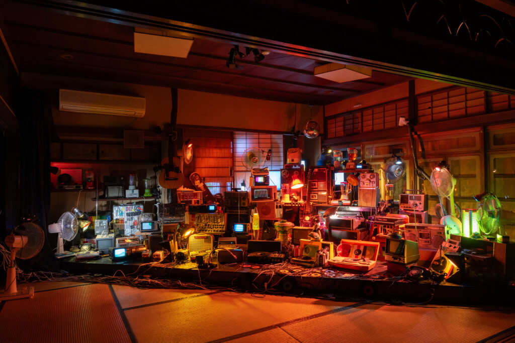 山口情報芸術センター[YCAM]では、アートや学びに関するイベントの企画制作に携わる人材を育成するプログラム「やまぐちアートコミュニケータープログラム 架空の学校『アルスコーレ』」の一環として、音楽家の大友良英が2015年に発表したサウンドインスタレーション作品をアップデートし《バラ色の人生 山口バージョン》として街なかで展示・公開しています。この作品は、扇風機やブラウン管テレビ、電気スタンドやジューサーミキサーといったアナログ家電製品がオーケストラを奏でる作品となっており、今回の山口バージョンでは会期中、「黒子」による上演と自動演奏による上演の2パターンをお楽しみいただけます。