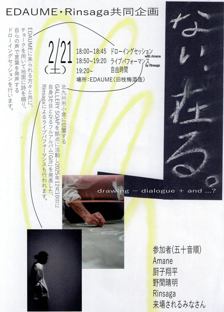 また、当日は現在北九州市小倉に位置するGALLERY SOAPを拠点に活動し、2025年12月10日に自身3作目となるフルアルバム「Gift」を発表した、Rinsagaによるライブパフォーマンスも行われます。